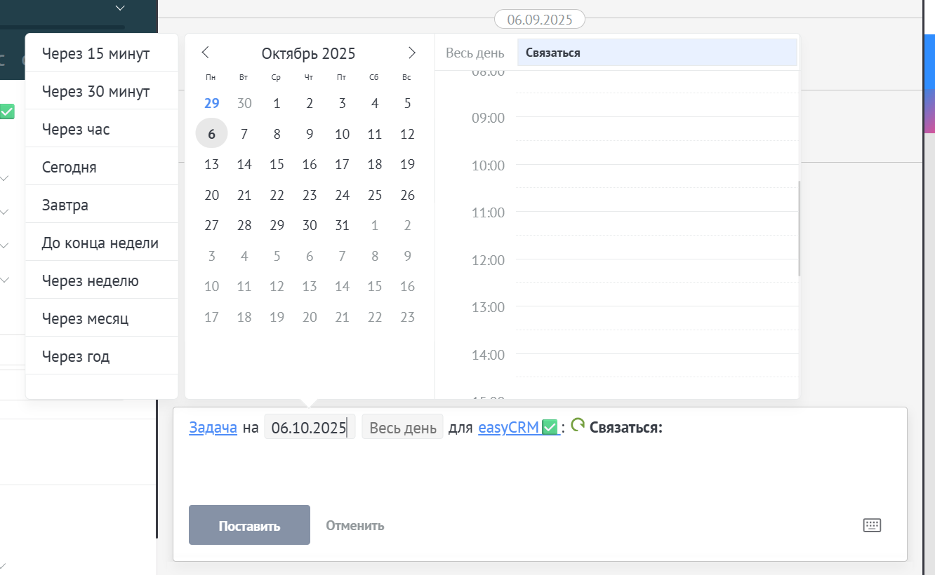 Если вам нужно сразу поставить такую же задачу, но на другое время, то вы можете это сделать прямо в карточке данной задачи.