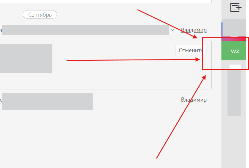 Вы также можете открыть приложение ваззапа внутри сделки. Для этого зайдите в сделку и нажмите на виджет Wazzup справа в списке виджетов (см. скриншот 6)