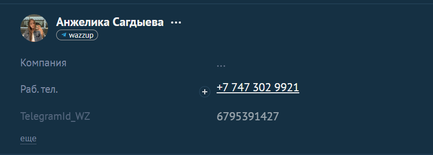 Скриншот 5. Значение элементов в Wazzup